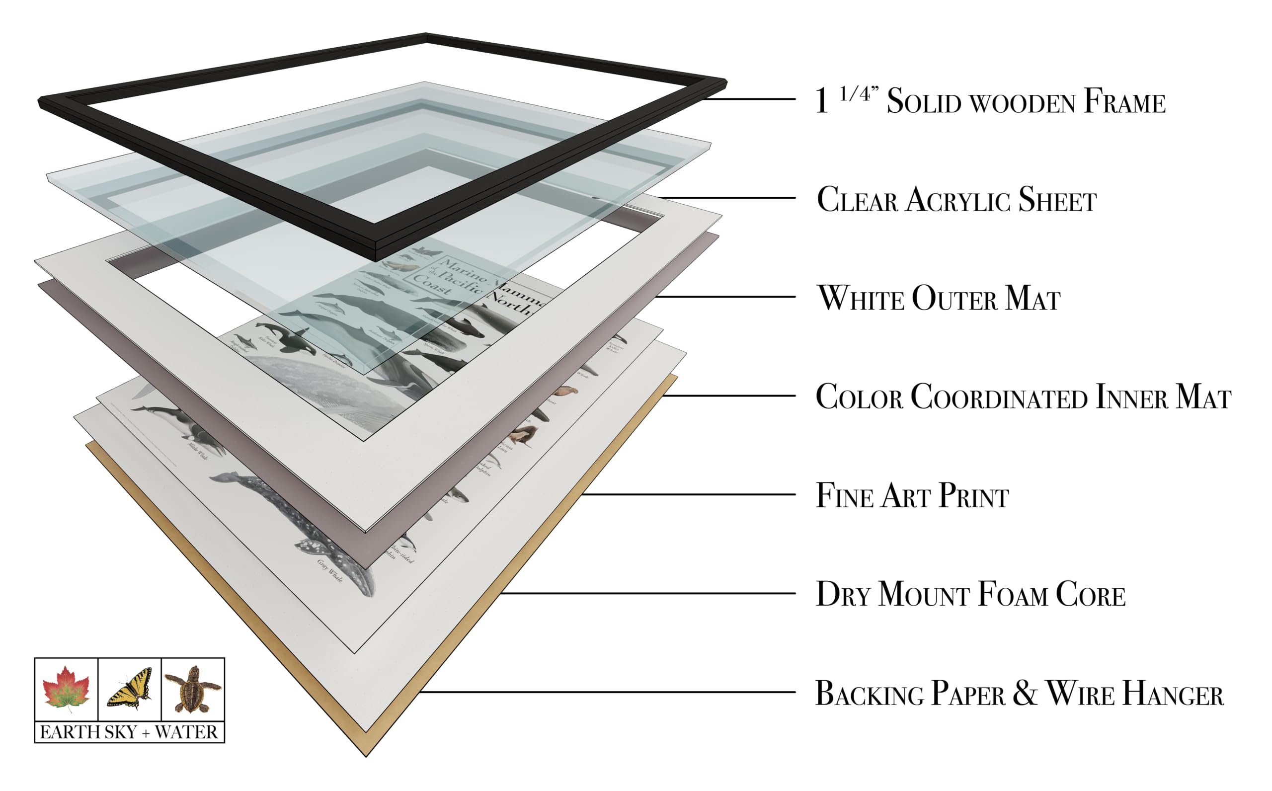 Earth Sky + Water - Marine Mammals of the Pacific Northwest Coast - Double-matted Posters with Black Frame