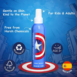Unleash your inner hero with Marvel Men's Captain America Body Spray. Designed