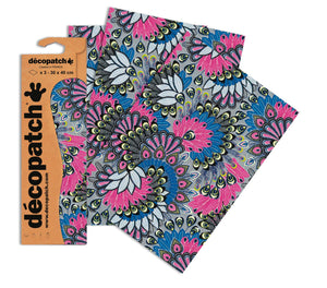 Papeles Decopatch - Paquete de 3 hojas - 11 3/4 x 15 3/4 - Pavo real azul