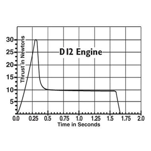 - El D12-3 es un motor de una sola etapa diseñado para vuelos en cohetes que pesan menos de 10 onzas, incluido el motor.
