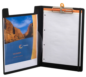 Resistente y elegante, el portapapeles Exaboard es ideal para tomar notas en cualquier lugar y para reuniones de negocios. El cierre elástico permite que el bloc de notas permanezca abierto o cerrado mientras realizas una presentación importante o realizas varias tareas a la vez. Como beneficio adicional, el portapapeles incluye un bolsillo de plástico A4 para guardar documentos, así como un portalápices con resorte.