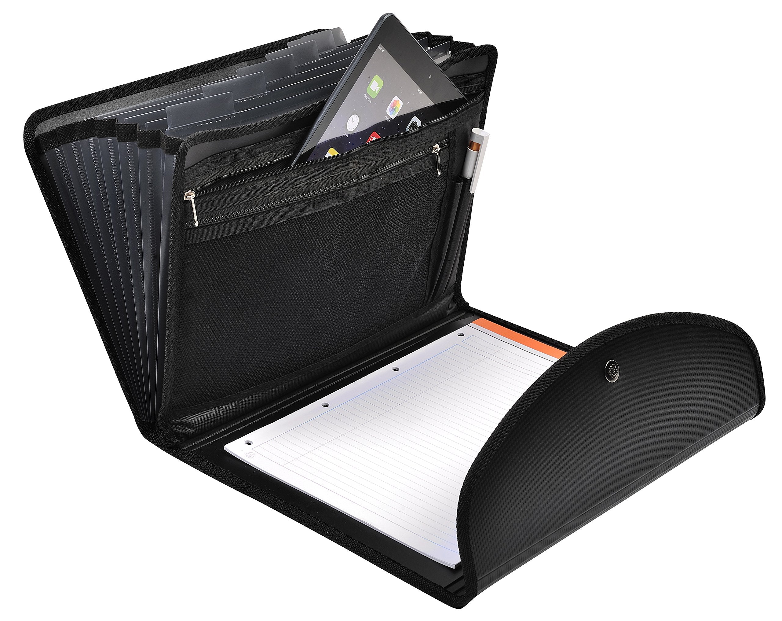 Este portafolios todo en uno es elegante y liviano, perfecto para profesionales que desean mantenerse organizados mientras viajan y lucir bien al mismo tiempo. Fabricado con polipropileno reciclado, el Exafolio tiene suficientes compartimentos para hojas sueltas, tarjetas, bolígrafos, teléfonos y calculadoras, así como un soporte para bloc de notas recargable con un bloc de notas Rhodia.