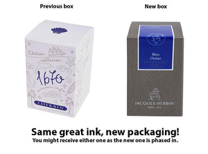 Tinta Herbin 1670 Anniversary, brillo dorado, botella de 50 ml, océano azul