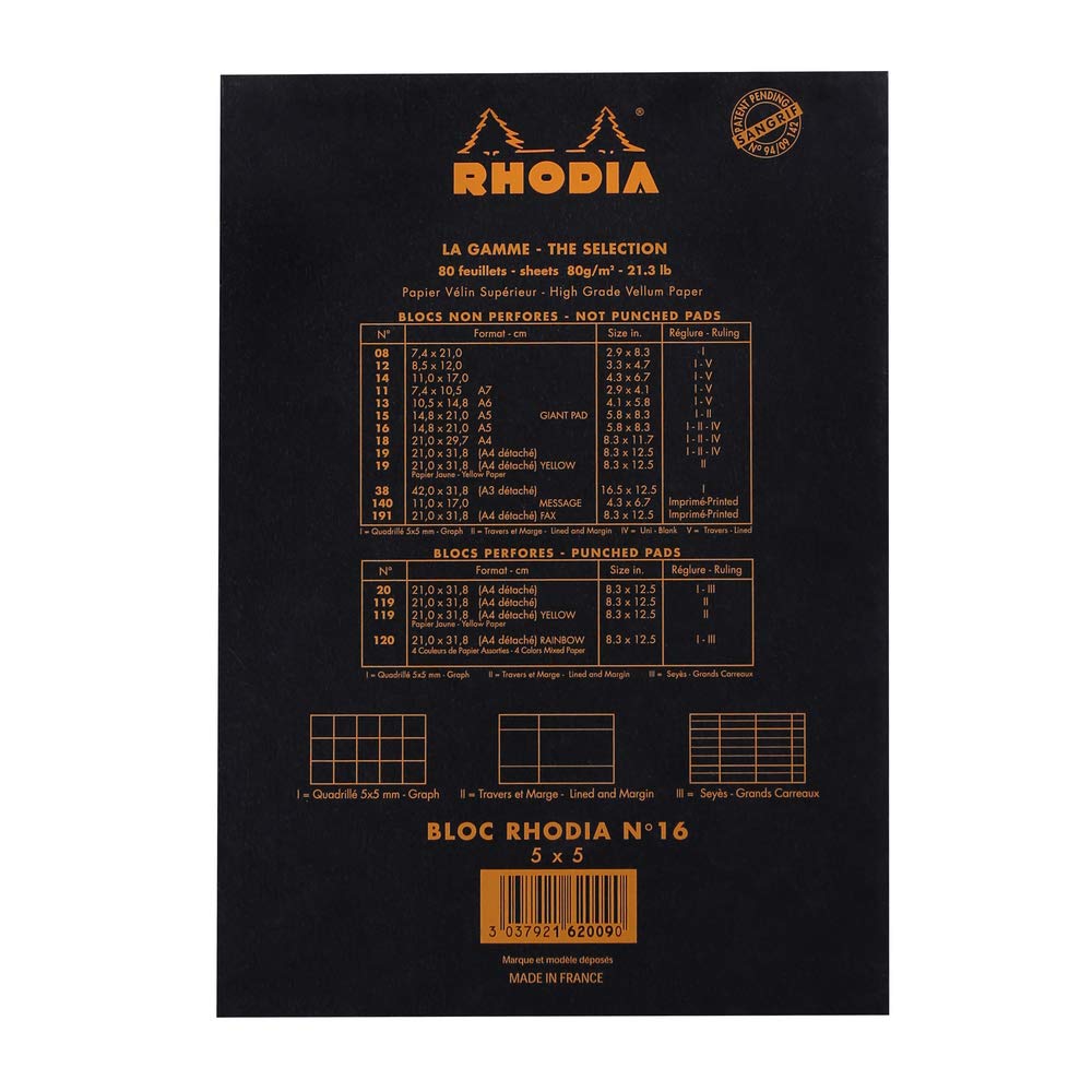 Bloc de notas Rhodia con grapas, cuadriculado, 80 hojas, 6 x 8 1/4, tapa negra