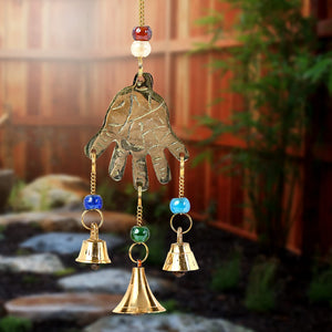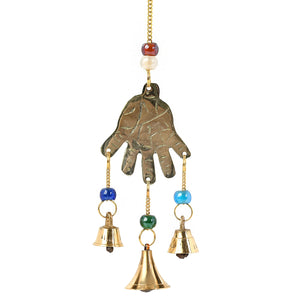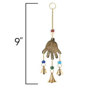 - Hand of Compassion Brass Wind Chime w/ Beads 9.5"L. Beads color may vary
