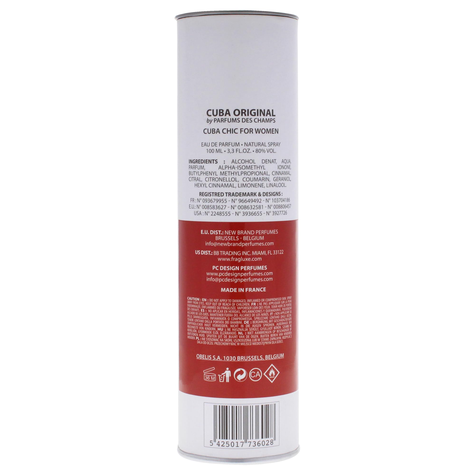 - Cuba Chic by Cuba (W) EDP Spray 3.4 oz is a citrus-woody fragrance with a modern, feminine twist.