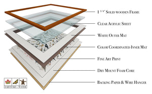 Dry mounted on 3/16 heat activated foam board ensures a flat print that will not warp with humidity. Custom Made Printed and framed in the USA with American-made high-grade materials.