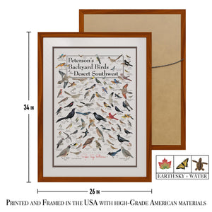 Earth Sky + Water - Petersons Backyard Birds of the Desert Southwest - Double-matted Posters with Honey Frame