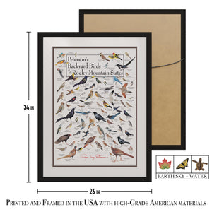 Earth Sky + Water - Petersons Backyard Birds of the Rocky Mountain States - Double-matted Posters with Black Frame