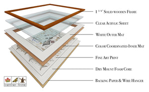 Dry mounted on 3/16 heat activated foam board ensures a flat print that will not warp with humidity. Custom Made Printed and framed in the USA with American-made high-grade materials.