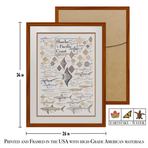 Earth Sky + Water - Sharks, Skates, Rays & Chimaeras of the Pacific Coast - Double-matted Posters with Honey Frame