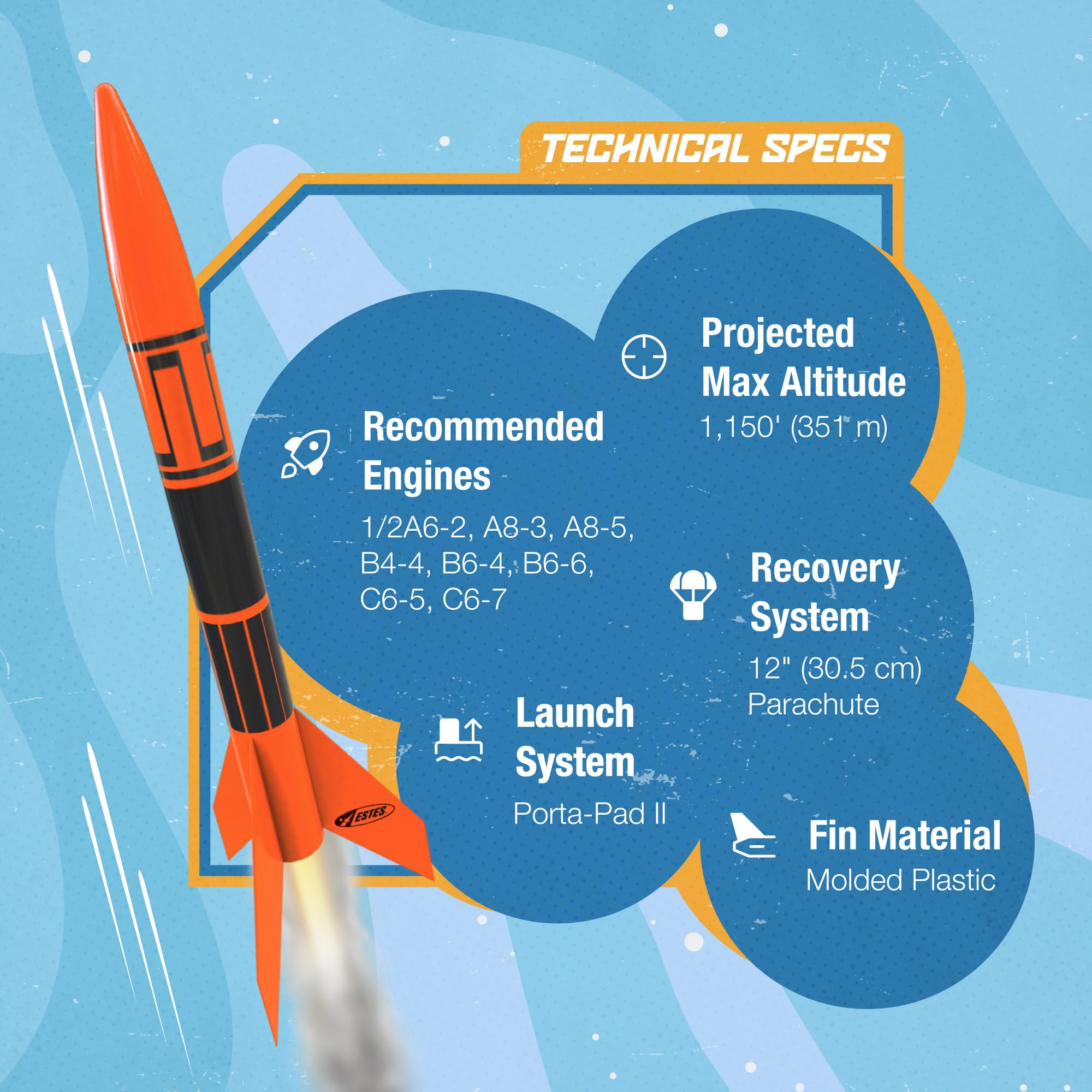 altitude1,100' (335m)Rocket weight1.2 oz. (34 g)Dimensions12.3 x 0.98" (H x