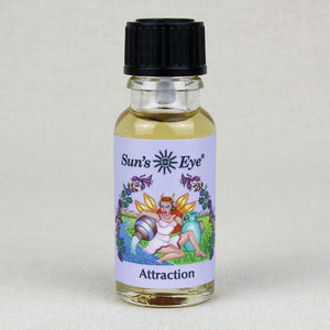 Attraction Oil, featuring Cinnamon Bark with sweet and earthy top notes in a base of Sandalwood, is formulated to draw love, luck, and money. Mystic Blends Oils are created by combining herbs and oils traditionally associated with each intention. Suns Eye oils are highly concentrated blends of essential and fragrance oils that are synthesized from a wide variety of ingredients. Our oils are petroleum-free, paraben-free, DBP and DEHP-free, as well as veganmeaning no animal products or testing. Suns Eye oils can be used to scent your home, car, or body. We offer aromatherapy lockets, bracelets, diffusers, and aromalamps for diffusing our oils. Although our oils are body grade, they should be diluted with a carrier oil such as Jojoba or Grapeseed oil for body use.