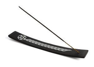 Wooden Incense Holder for Sticks Pentacle Black Painted Wood 10 inches Long