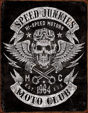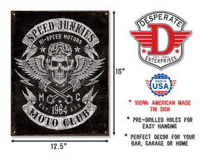 Speed Junkies Moto Club Tin Sign 12.5 x 16 inches