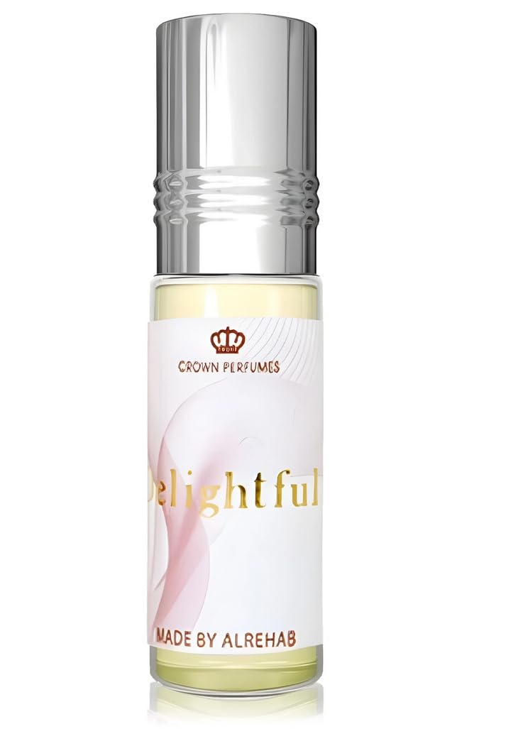 Al Rehab Delightful Perfume Oil Roll On, 0.2 Fl Oz (6 ml) offers a sweet, playful, and feminine fragrance that blends fruity, floral, and creamy gourmand notes into a soft and uplifting scent experience. It opens with bright citrus and juicy fruit tones like mandarin and strawberry, followed by a delicate heart of violet, freesia, and sweet florals, before settling into a warm, comforting base of vanilla, sandalwood, musk, and creamy almond accords for a smooth, dessert-like finish . This concentrated, alcohol-free perfume oil provides long-lasting wear while remaining gentle on the skin, and the compact roll-on applicator allows for precise, mess-free application on pulse points throughout the day. Perfect for everyday use, it delivers a light yet noticeable fragrance that feels youthful, cozy, and inviting while reflecting Al Rehabs signature blend of affordability and high-quality Arabian-inspired perfumery.