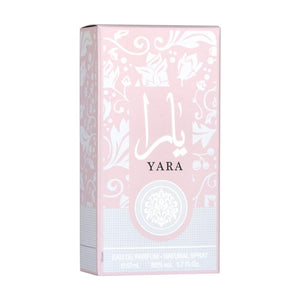 Ard Al Zaafaran Yara Eau de Parfum for Women 50 mL is a soft feminine gourmand fruity floral that opens with heliotrope orchid and tangerine then melts into tropical fruits and a sweet gourmand accord before settling into vanilla sandalwood and musk creating a cozy creamy scent that is perfect for everyday wear and layering