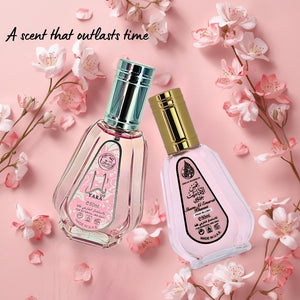 Indulge in a beautifully curated sweet and feminine fragrance bundle from Ard Al Zaafaran, featuring two irresistible scents that celebrate softness, warmth, and playful elegance. This duo is perfect for fragrance lovers who enjoy creamy gourmand accords, tropical fruits, and comforting vanilla-based compositions. Yara For Women Eau De Parfum opens with delicate floral notes of heliotrope and orchid, uplifted by juicy tangerine for a bright and elegant introduction. At the heart, a luscious gourmand accord blended with tropical fruits creates a sweet, youthful, and addictive character. The fragrance settles into a comforting base of warm vanilla, smooth sandalwood, and soft musk, leaving a creamy, long-lasting trail on the skin. Pink Blush Shams Al Emarat Khususi Eau De Parfum begins with a vibrant burst of raspberry, nectarine, and crisp apple, offering a fresh and fruity opening. Its heart reveals an indulgent blend of marshmallow, strawberry, coconut, and orange blossom, delivering a soft, creamy, floral-gourmand charm. The base of cream, sugar, and vanilla creates a rich, cozy finish that feels elegant and irresistibly sweet. Why Youll Love This Bundle: Perfect for lovers of sweet, gourmand, and feminine fragrances Ideal for daily wear, casual outings, and cozy evenings Creamy, long-lasting, and crowd-pleasing scent profiles A versatile duo that transitions effortlessly from day to night This fragrance bundle is a must-have for anyone who enjoys soft sweetness, tropical warmth, and vanilla-rich luxury, making it a beautiful gift or a delightful addition to any perfume collection.