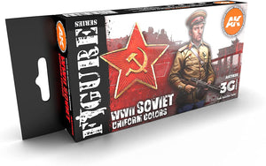 AK Interactive 3G Soviet WWII Uniform Colors - Plastic Modelling Paints & Accessories, Item # AK-11635. This 3Gen set includes a selection of tones for painting figures with Soviet Army uniforms of WWII.