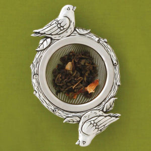 - This decorative "Birds" loose leaf tea strainer sits on your favorite tea cup or mug.