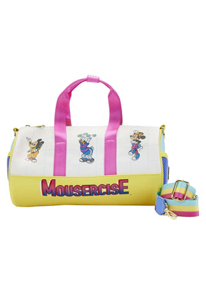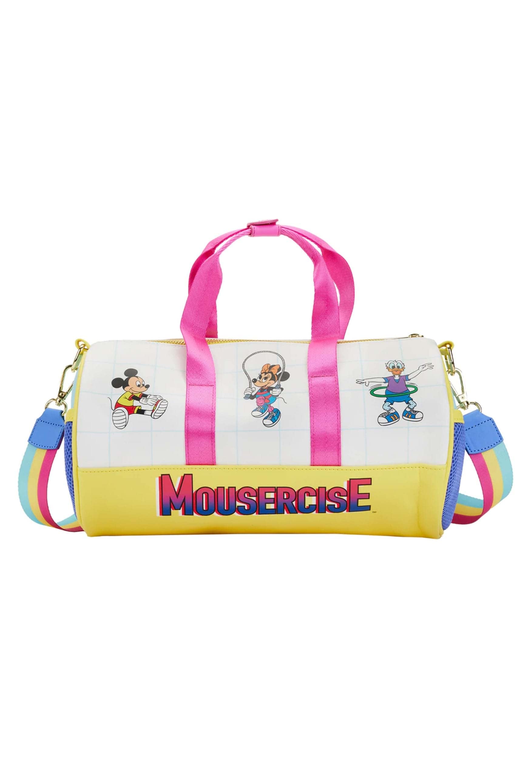 Loungefly Disney Mousercise Duffle Bag, Mickey, Minnie Mouse, and Donald Duck Travel Accessories, 12 Inches