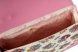 Tattoo Crossbody Bag. PU construction. Magnetic snap closure. One interior