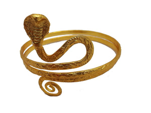 - Beautiful gold tone metal upper arm bracelet features elegant intricate snake design.