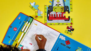 - Each one opens up to reveal a 20 piece puzzle, 4 colour dry wipe pens with erasers, pop out play pieces, a doodle and colour in section and its all magnetic too so no chance of losing any pieces whilst youre out and about!