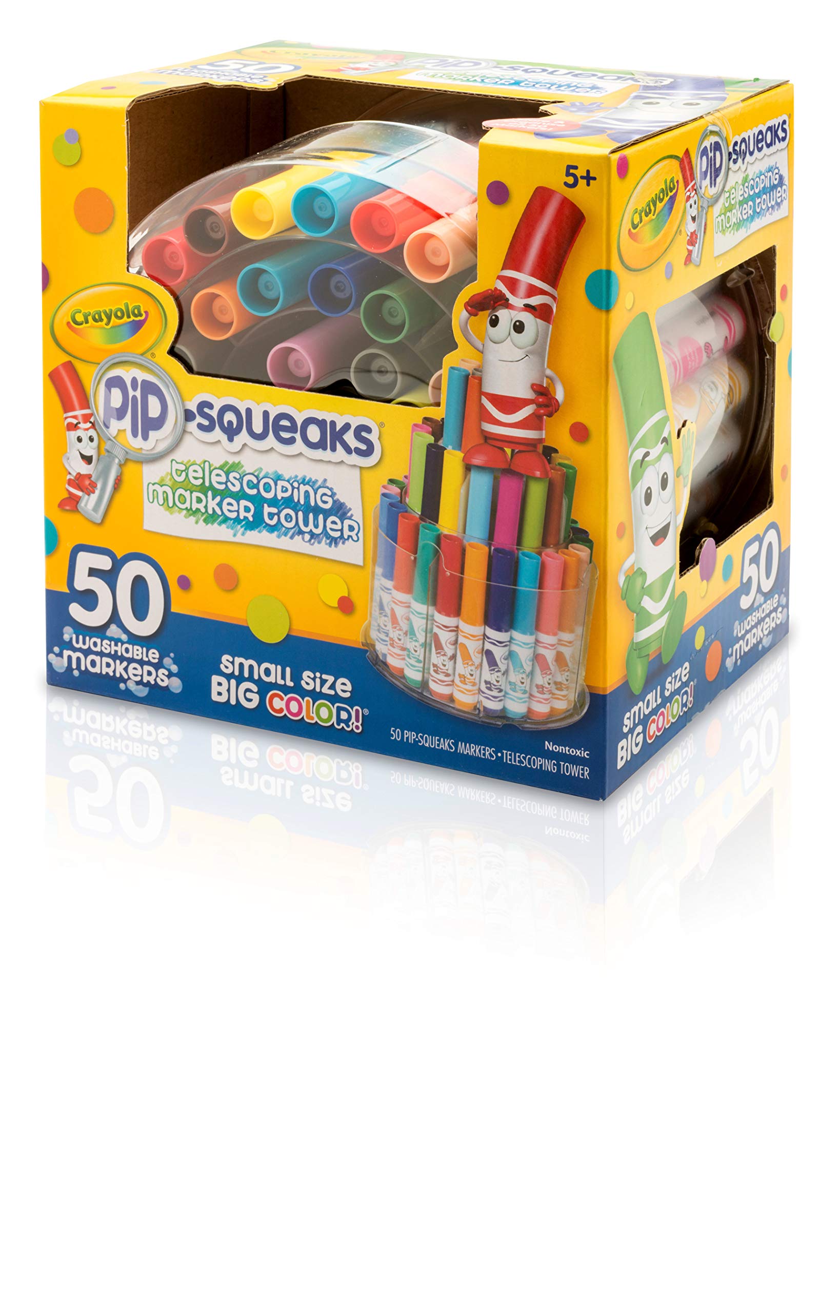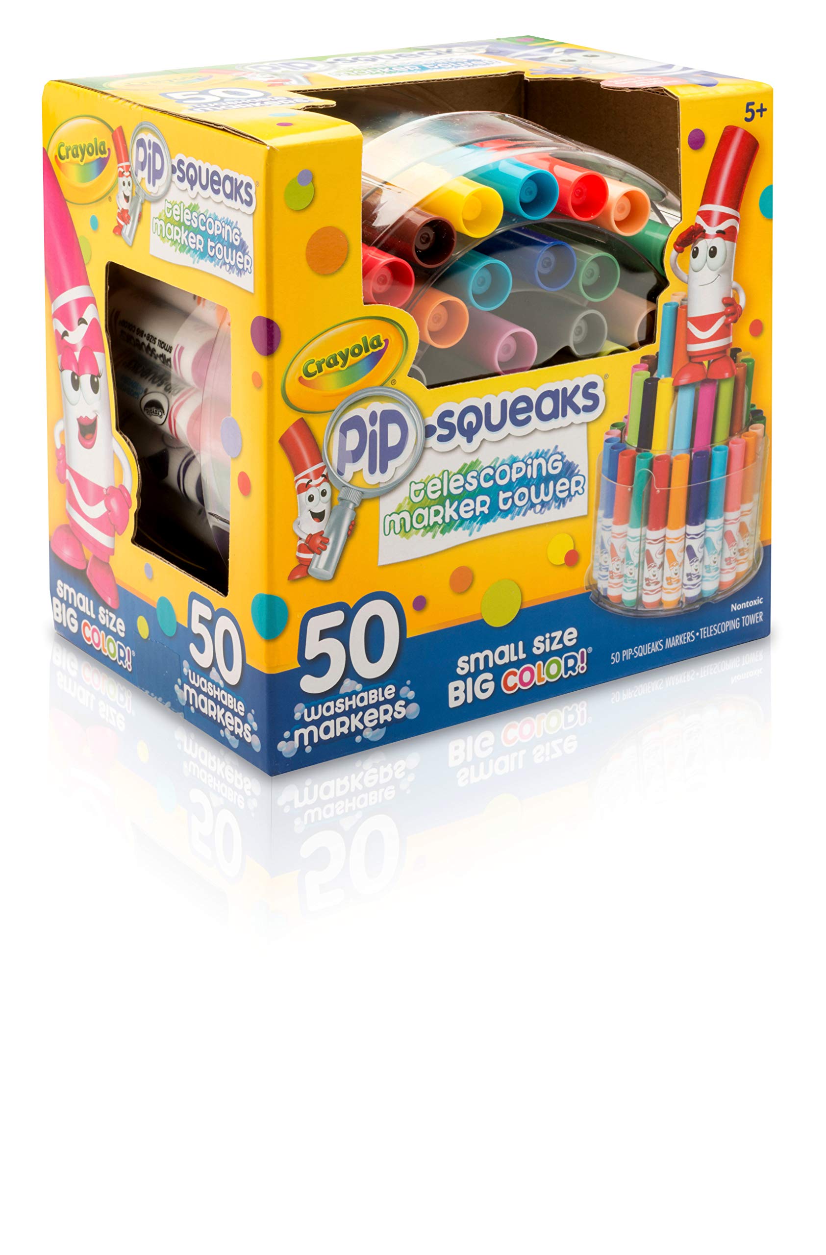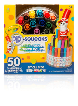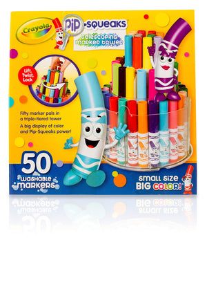 The 50ct Crayola Pip Squeaks Marker Tower boasts small size but big color! Little hands will love Pipsqueaks Markers for drawing, coloring, and creating one of a kind art projects! Doubling as both a display and storage case, this marker set lets you show off your drawing supplies to friends. Perfect for coloring books and crafts for kids, these washable markers won't bleed through the page. Crayola markers make a great holiday or birthday gift idea for kids! Pair with Crayola Construction Paper for even more arts and crafts inspiration.