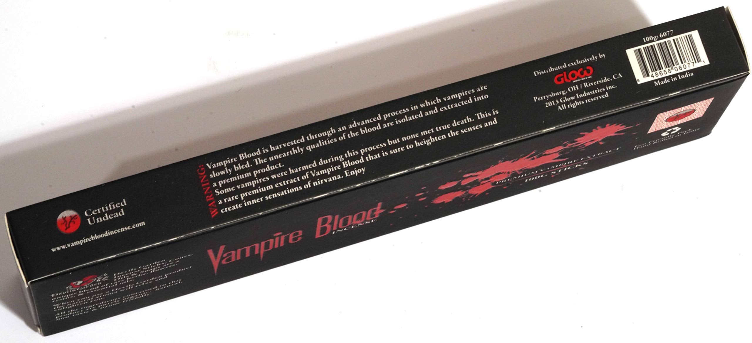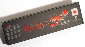 WARNING: Vampire Blood is harvested through an advanced process in which vampires are slowly bled. The unearthly qualities of the blood are isolated and extracted into a premium incense. Some vampires were harmed during this process but none met true death. This is a rare premium extract of Vampire Blood that is sure to heighten the senses and create inner sensations of nirvana. Enjoy.
