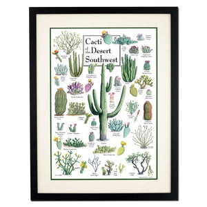 - This stunning poster includes 32 species of cacti and cactus-like plants, both common and exotic, found in the desert Southwest, including California, western Texas, and Colorado