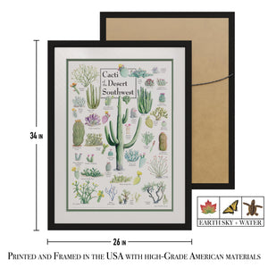 Earth Sky + Water - Cacti of the Desert Southwest - Double-matted Posters with Black Frame