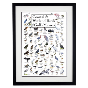 - This stunning poster includes 73 bird species, both common and exotic, found in the coastal and wetland areas throughout the Gulf region, from Texas in the west, Louisiana, Alabama, and Florida
