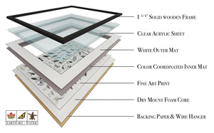 A beautifully crafted, museum-quality print, professionally mounted and double-matted with acid-free materials. Printed on premium stock with fade-resistant inks and finished in a durable frame, it offers timeless style and lasting quality, ready to enhance any space.