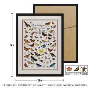 Earth Sky + Water - Common Butterflies of the Midwest - Double-matted Posters with Black Frame
