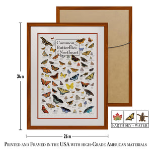 Earth Sky + Water - Common Butterflies of the Northeast - Double-matted Posters with Honey Frame
