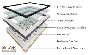 Dry mounted on 3/16 heat activated foam board ensures a flat print that will not warp with humidity. Custom Made Printed and framed in the USA with American-made high-grade materials.