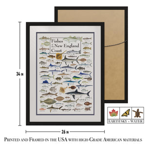 Earth Sky + Water - Fishes of the New England Coast - Double-matted Posters with Black Frame