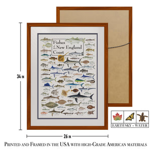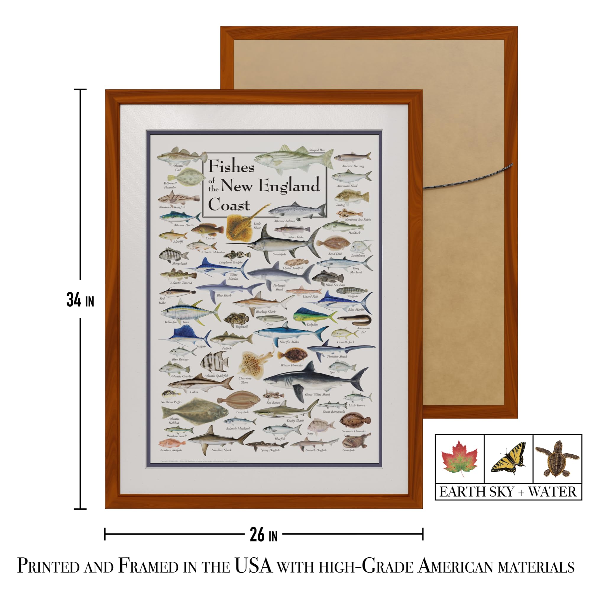 Earth Sky + Water - Fishes of the New England Coast - Double-matted Posters with Honey Frame
