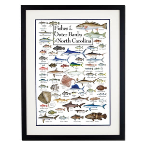 - This stunning poster includes 90 fish species, both common and exotic, found inshore, nearshore, in the bay, and offshore from the Outer Banks.