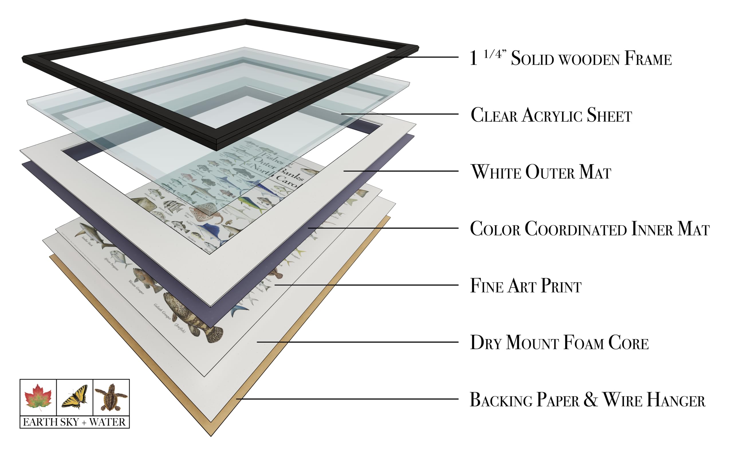 Earth Sky + Water - Fishes of the Outer Banks - Double-matted Posters with Black Frame