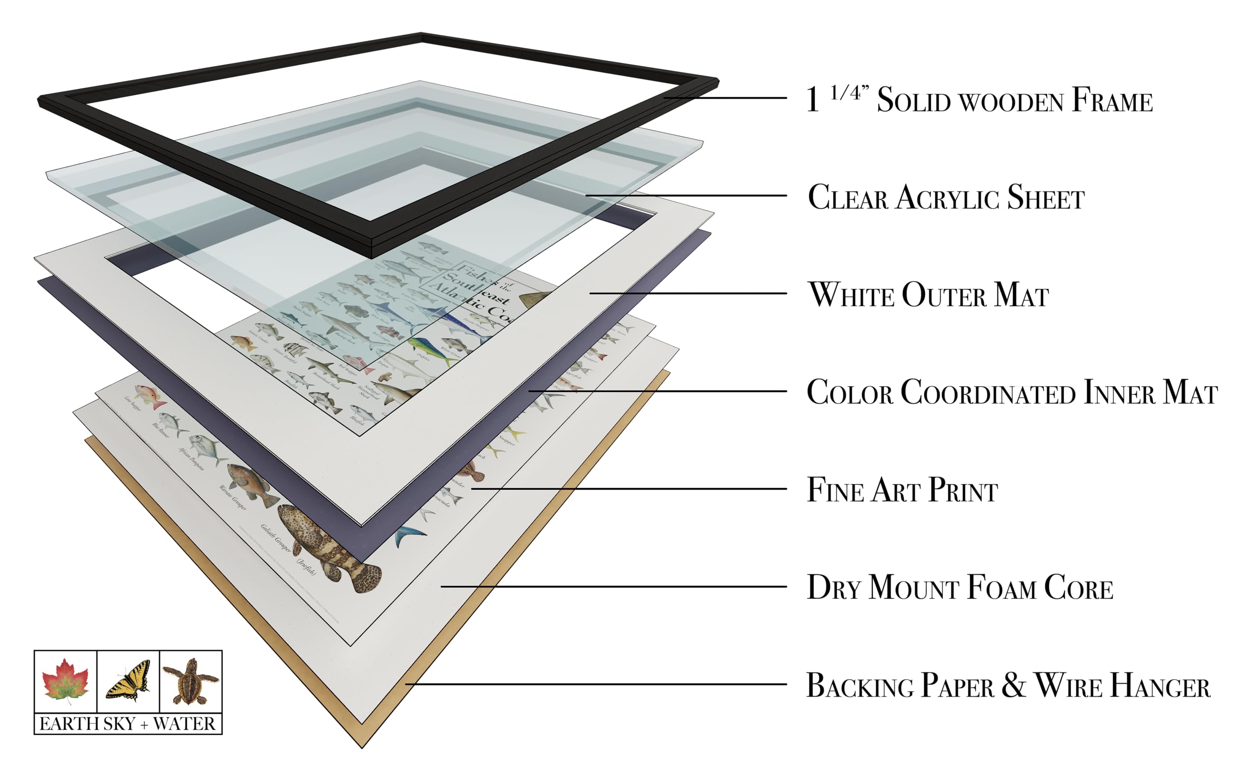Earth Sky + Water - Fishes of the Southeast Atlantic Coast - Double-matted Posters with Black Frame