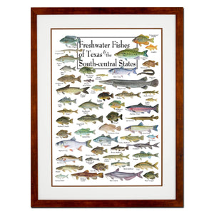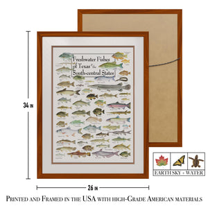 Earth Sky + Water - Freshwater Fishes of Texas & South - Double-matted Posters with Honey Frame