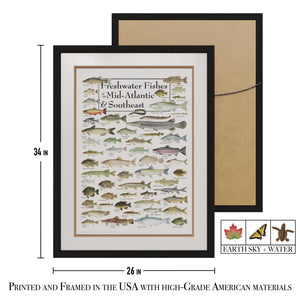 Earth Sky + Water - Freshwater Fishes of the Mid-Atlantic & Southeast - Double-matted Posters with Black Frame