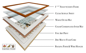 Dry mounted on 3/16 heat activated foam board ensures a flat print that will not warp with humidity. Custom Made Printed and framed in the USA with American-made high-grade materials.