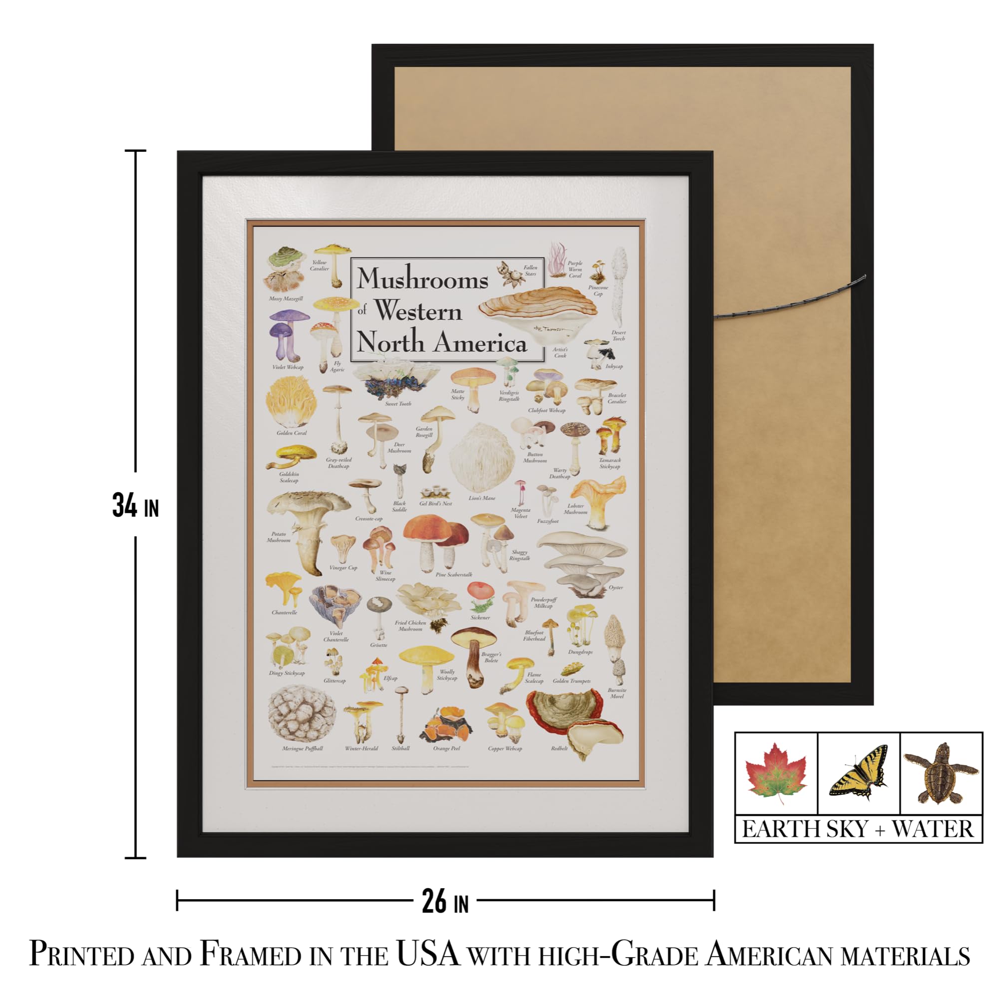 Earth Sky + Water - Mushrooms of Western North America - Double-matted Posters with Black Frame
