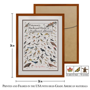 Earth Sky + Water - Peterson's Backyard Birds of Northern California - Double-matted Posters with Honey Frame
