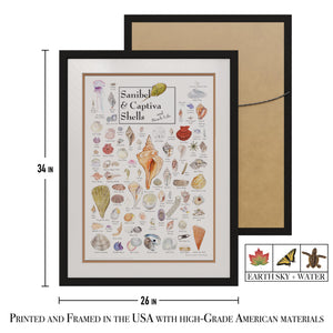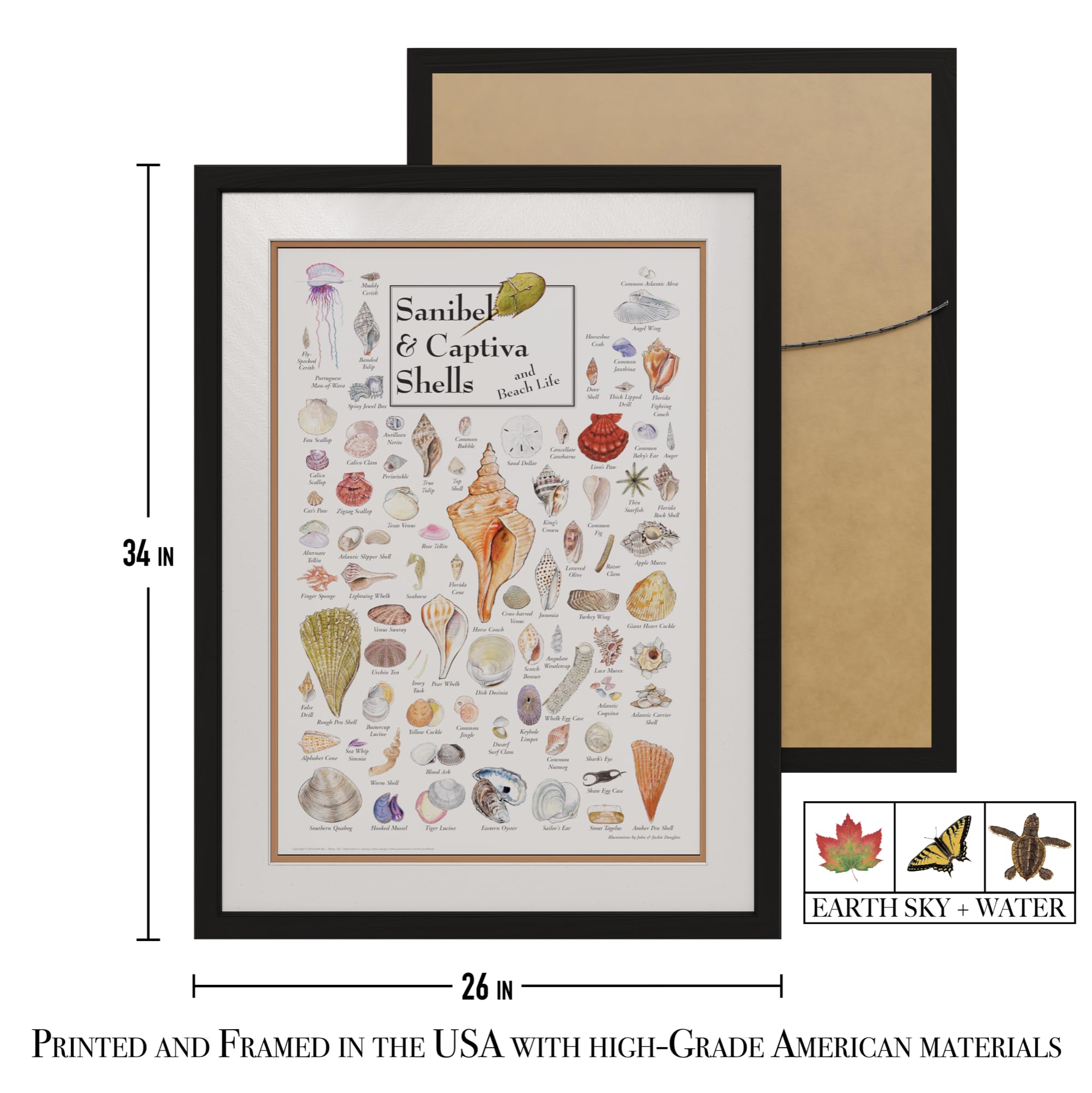 Earth Sky + Water - Sanibel & Captiva Shells & Beach Life - Double-matted Posters with Black Frame