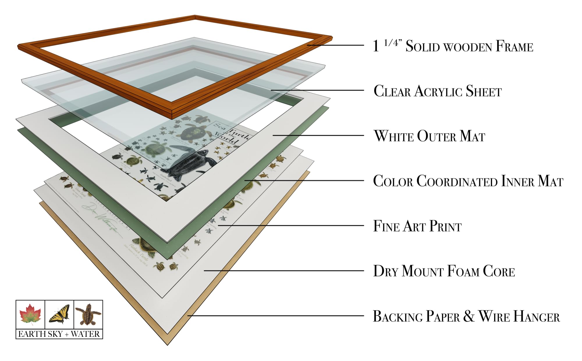 Earth Sky + Water - Sea Turtles of the World - Double-matted Posters with Honey Frame