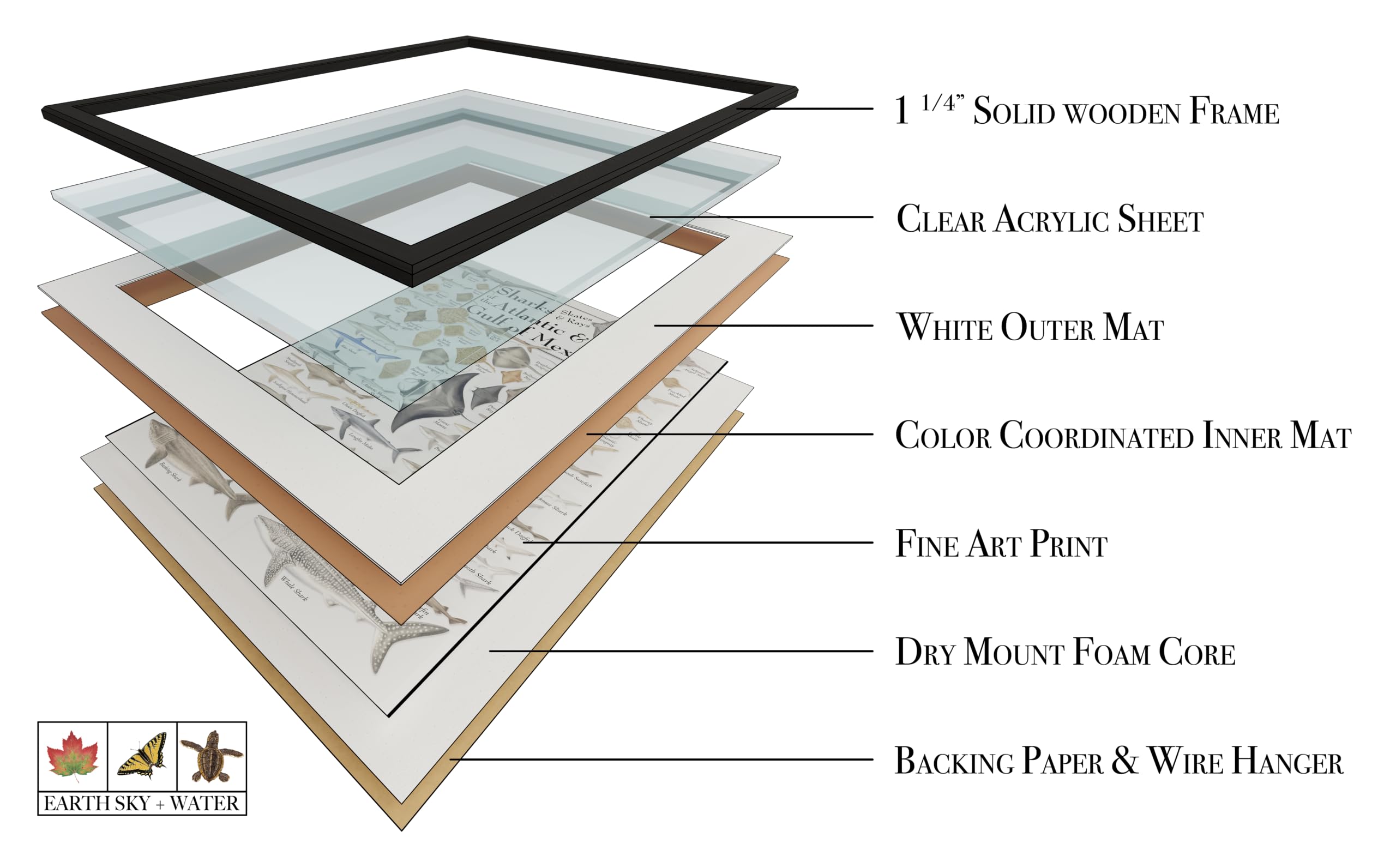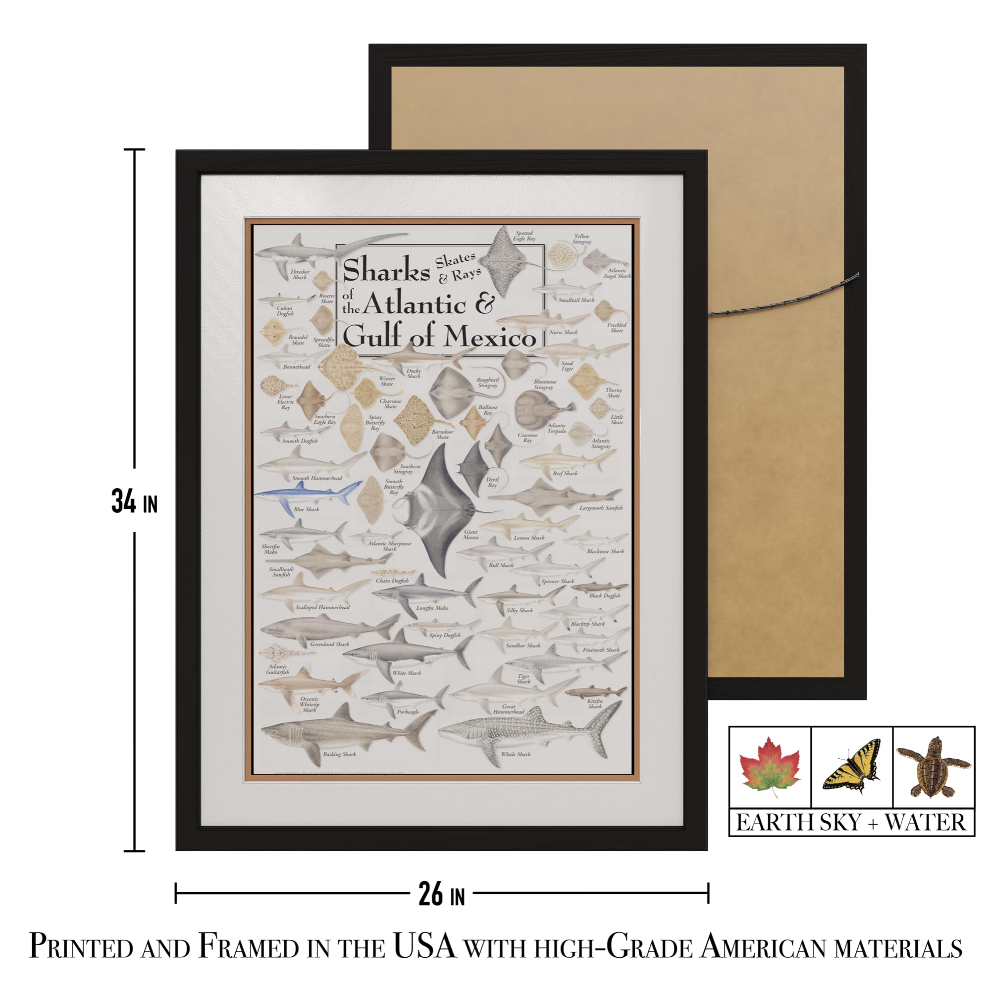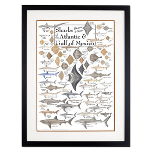 Earth Sky + Water - Sharks, Skates, and Rays of the Atlantic and Gulf of Mexico - Double-matted Posters with Black Frame